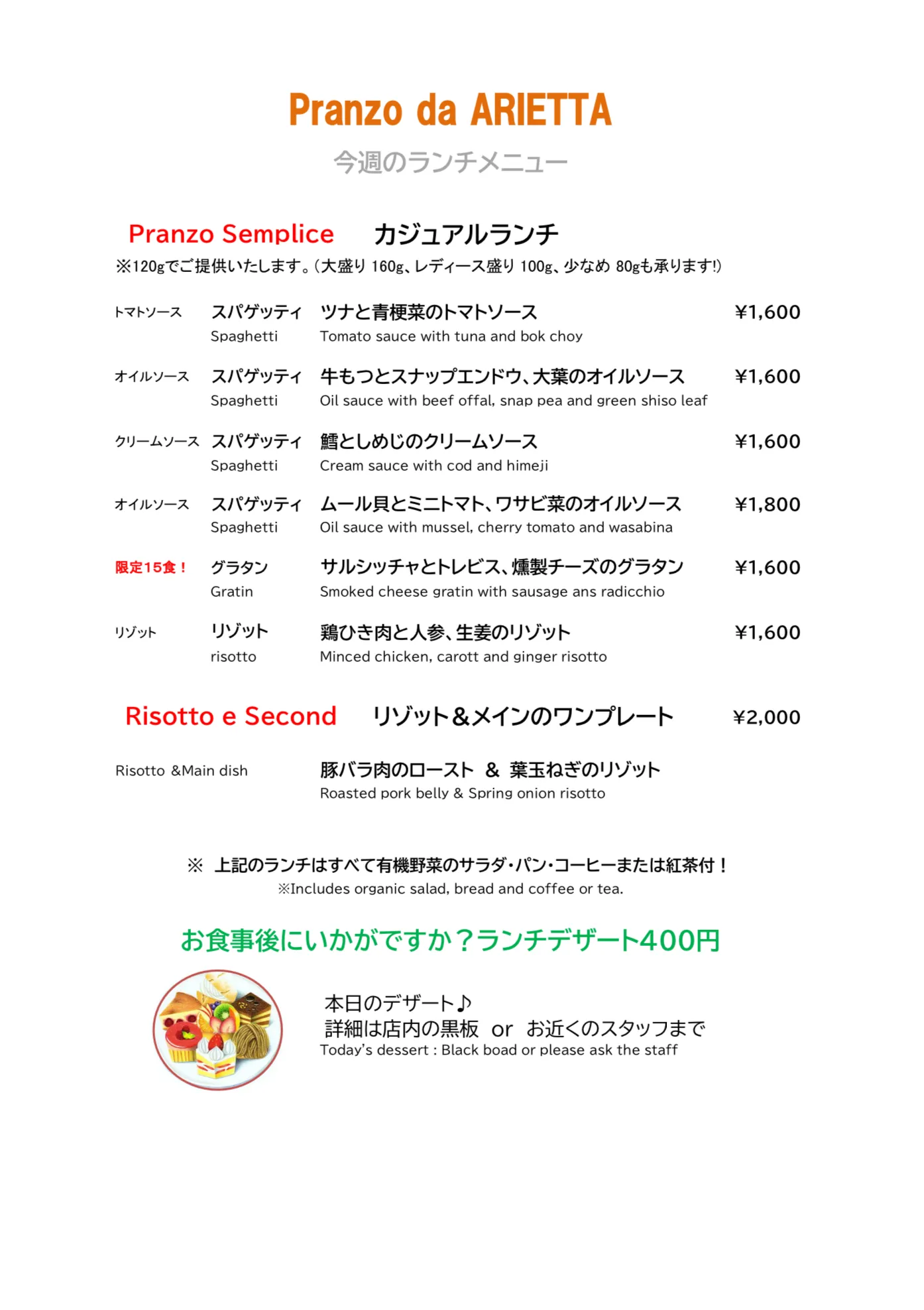 2/2(月)〜のランチメニューです